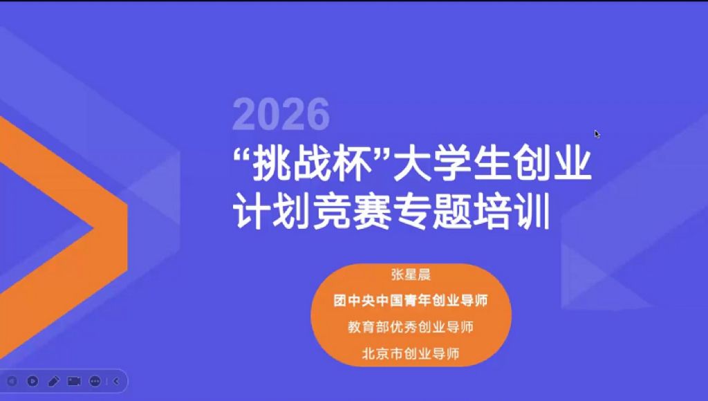 为扎实推进“挑战杯”备赛工作,助力优质项目孵化培育,2月4日,校团委组织“挑战杯”项目专题培训,邀请团中央中国青年创业导师、教育部优秀创业导师、北京市创业导师张星晨,通过腾讯会议平台开展专题培训。各参赛项目团队成员及指导教师参加培训。