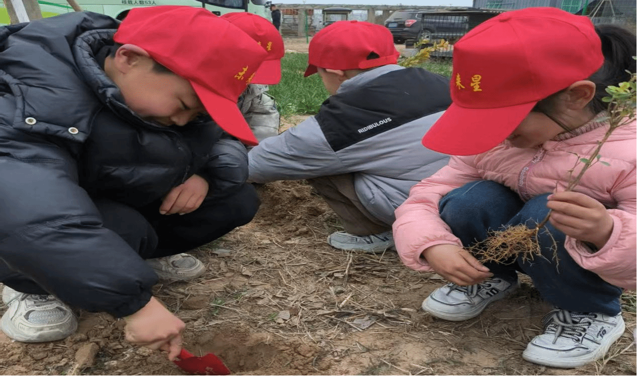 活动当日,志愿者们一早抵达清雅庄园,与参与活动的儿童共同开启植树环节。活动中,志愿者通过示范教学,指导孩子们完成铲土入坑、扶苗填实、围堰浇水等步骤,同步讲解树木对生态环境的重要意义及科学种植知识。在协作过程中,孩子们认真学习、积极实践,一棵棵新苗有序扎根沃土,为春日大地增添蓬勃生机。