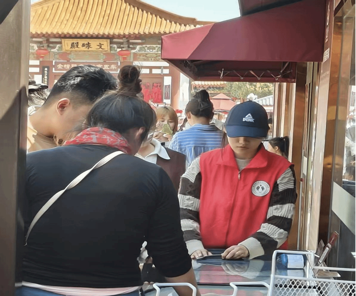 活动当日,志愿者们身着统一红色马甲,提前抵达景区并迅速投身岗位。在景区入口处,志愿者热情为游客提供咨询引导、路线规划等服务。面对客流高峰,志愿者主动承担秩序维护任务,穿梭于人群中礼貌劝阻乱扔垃圾、随意插队等不文明行为,引导游客遵守游览秩序,助力景区管理精细化。在景区文创区,志愿者协助工作人员为游客提供商品介绍服务,结合文化内涵详细解读文创产品背后的历史渊源,帮助游客深入了解景区文化特色,提升游览体验。全程中,志愿者以专业态度和温暖服务,将文明理念融入每个细节,成为景区内一道亮丽的青春风景线。
