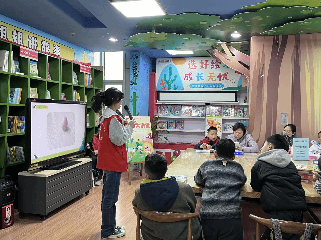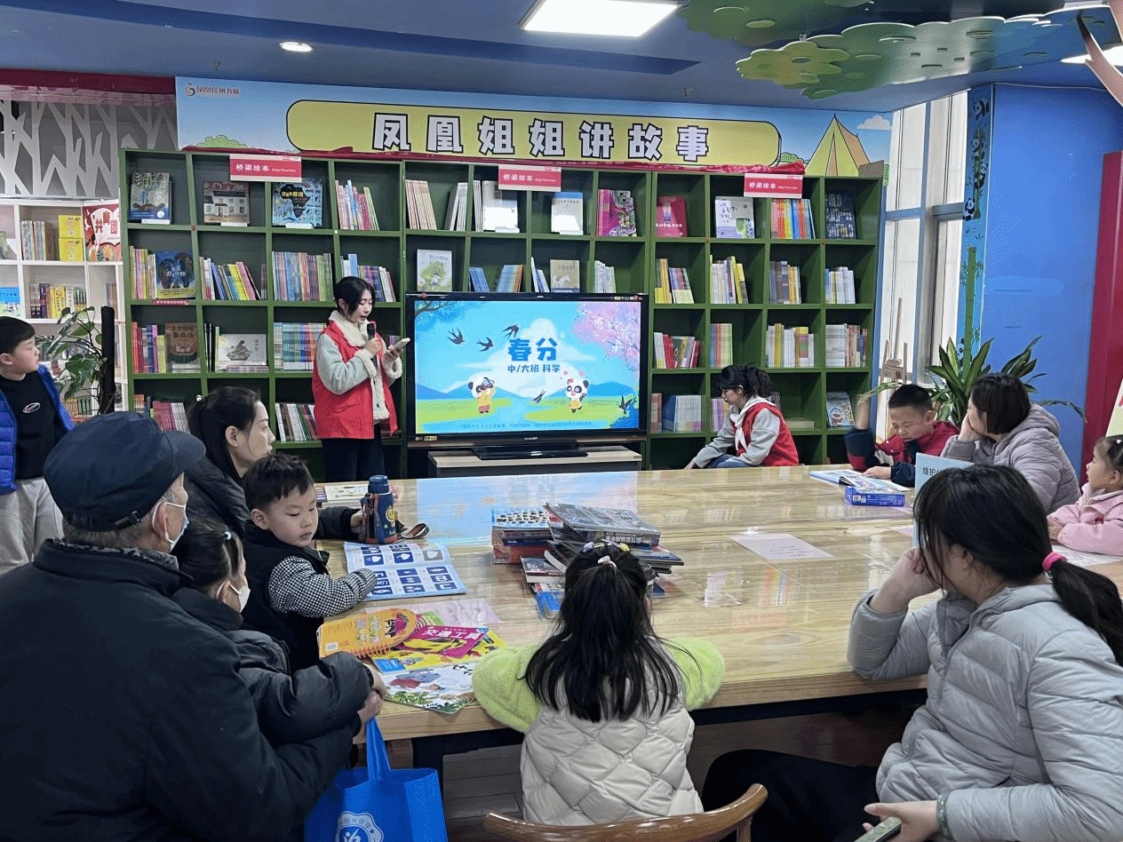 活动当日,志愿者们精心策划了一系列丰富有趣的环节,涵盖儿童歌舞表演、生动的绘本故事讲解、活泼的手势舞教学以及趣味互动小游戏。在绘本故事讲解中,志愿者们巧妙地融入春天的自然现象、动植物知识,让孩子们身临其境地感受春天的独特魅力。为激发孩子们的参与热情,活动特别准备了动物盲盒作为奖励,现场气氛热烈,充满欢声笑语。
