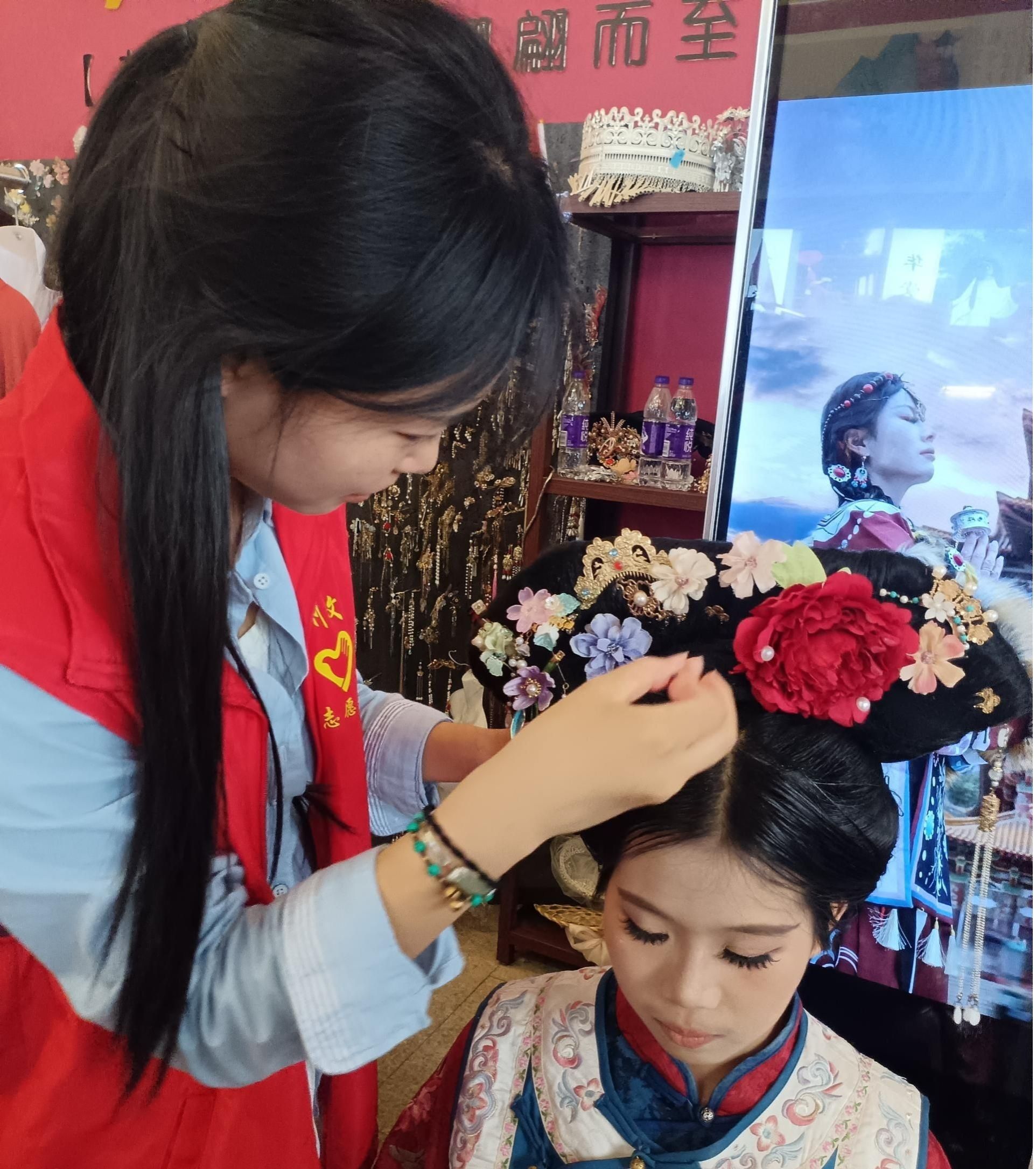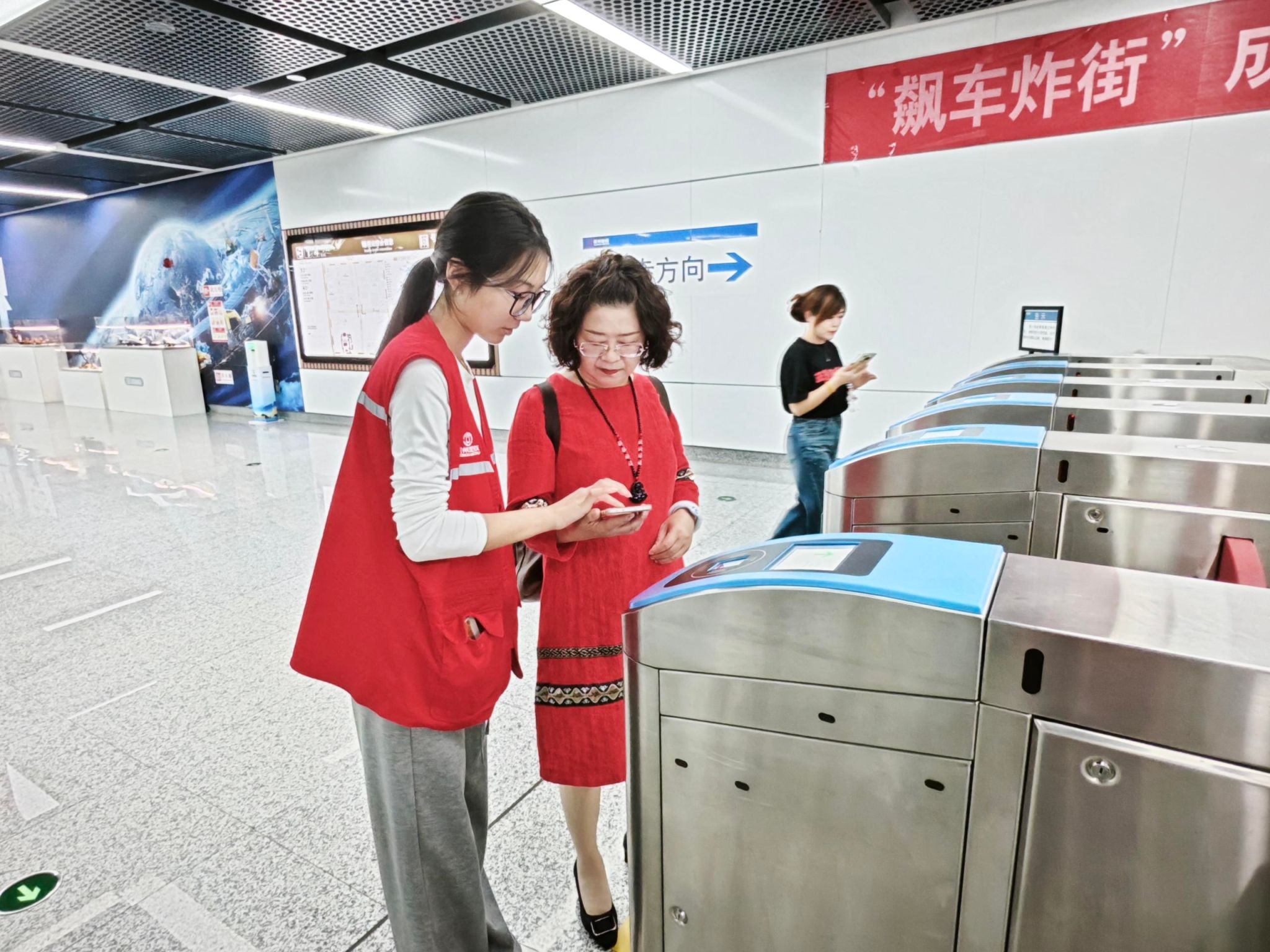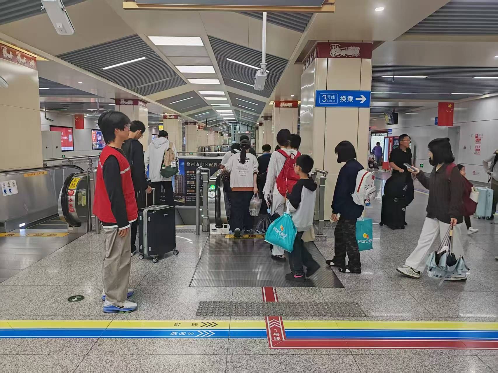 蟠桃地铁站内,志愿者身着统一志愿服,耐心协助乘客购票、维护站内秩序、提供线路指引,眼神中满是真诚与热情,为繁忙的地铁站带来青春动力,成为人潮中的“导航标”。在志愿服务过程中,志愿者始终细致负责,用行动为乘客排忧解难,让志愿之光在地铁站内熠熠生辉。汉服馆内,志愿者化身汉文化“讲解员”,协助旅客整理衣冠、讲解礼仪、介绍徐州汉文化渊源,并引导游客沉浸式体验汉风之美,使汉文化在国庆假期绚烂绽放。徐州火车站内,人潮涌动。志愿者驻守在候车大厅,为旅客提供退票改签咨询、行李寄存指引、应急帮助等服务,同时快速响应旅客失物查找需求,他们以全天候的坚守,让每位旅客的国庆归途都充满暖意。