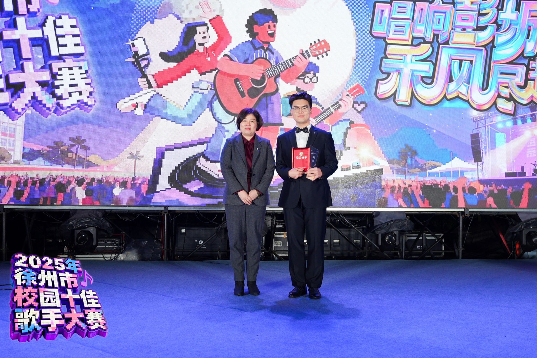 11月9日,由共青团徐州市委员会指导,共青团泉山区委员会、泉山区文化体育和旅游局等共同承办的“唱响彭城 禾风尽起”2025徐州校园十佳歌手大赛在珠山数字经济产业园顺利收官。我校与中国矿业大学、徐州医科大学、江苏师范大学等17所大中专院校的优秀学子齐聚赛场,以歌为媒,同台竞技,展现了新时代青年学子的艺术素养与精神风貌。我校何从畅同学荣获大赛亚军,陈砚池同学位列第五名,李恒同学获得优秀奖。