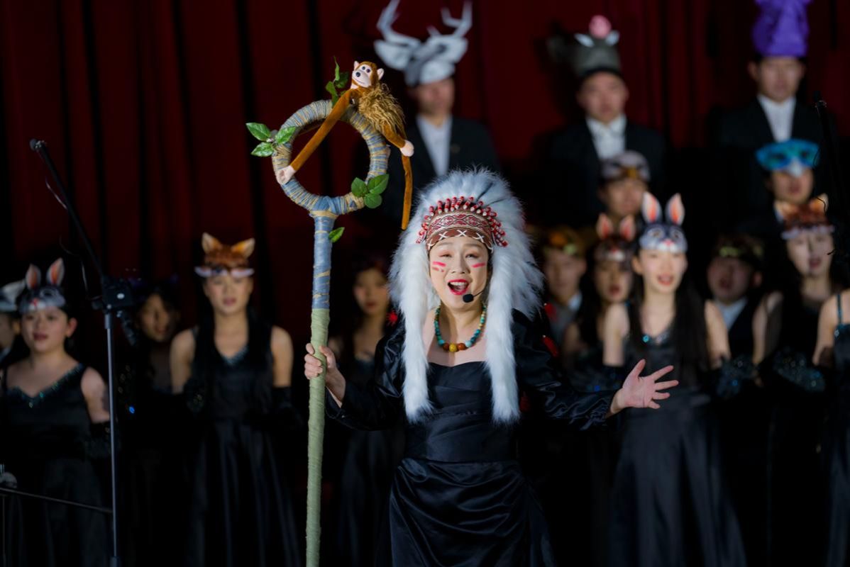 音乐会以钢琴伴奏者的戏剧化独奏为线索,贯穿“向往·青涩与探索”“成长·挑战与共鸣”“信念·希望与远方”三大篇章。演出融合混声、阿卡贝拉、音乐剧等多种形式,既有《狮子王》套曲、《伊犁河的夜莺》等经典作品,也包含《苏子立于苏堤》等原创曲目,呈现了中西合唱艺术的交融与创新。随后的艺术课堂环节,指挥党杰老师通过《茉莉花》《送别》的演绎,生动讲解了声部交织的和谐之美。